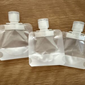 自宅にある自身が使っているシャンプーやトリートメント、化粧水などを入れ替える用のボトルです。